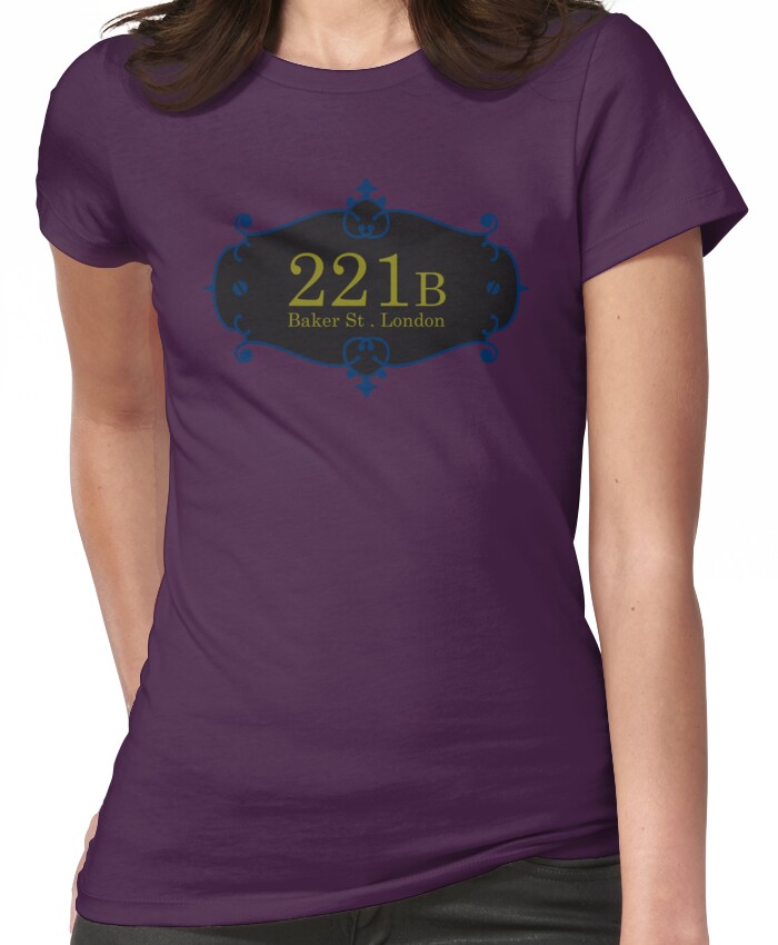 from the Artist: Women’s T-Shirt. Sherlock:”221B Baker st” Victorian-style sign board.