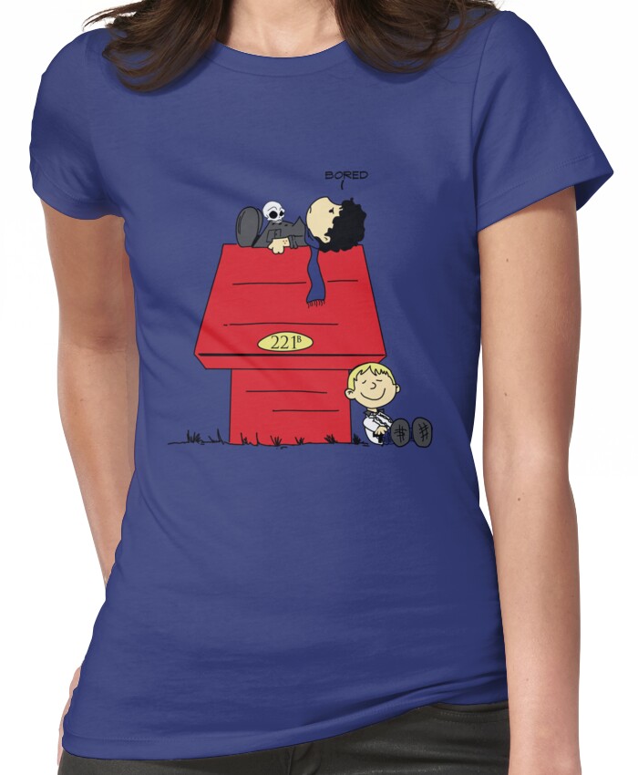 from the Artist: Women’s T-Shirt. What happens if you put Peanuts and the bbc version of Sherlock in a blender? Why this of course! Skull? Check. Nicotine Patches? Check. Cable-knit jumper? Gun? Check. Check. This shirt contains all the ingredients you need to get your consulting detective and BAMF side-kick groove on, with an added side of cute.