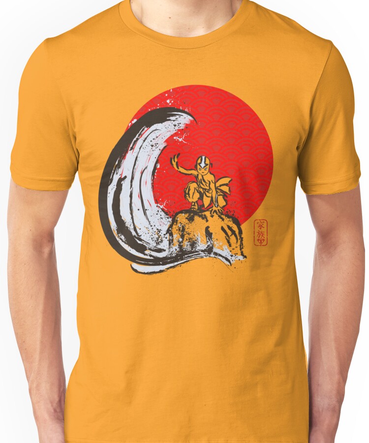 from the Artist: Unisex T-Shirt. A Sumi-e style drawing of Aang in the Avatar state.