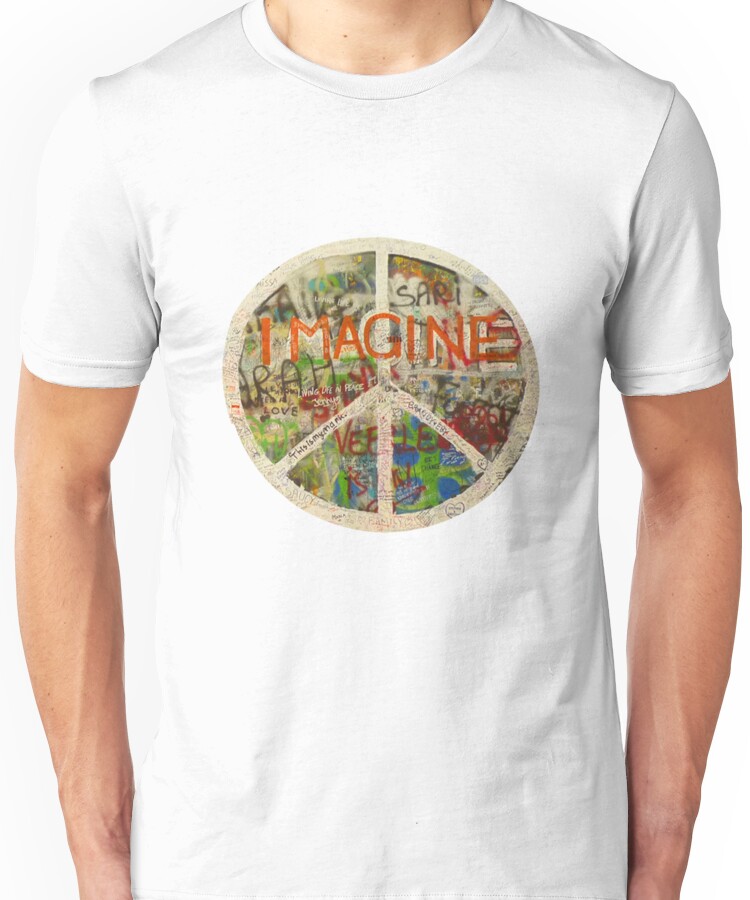 from the Artist: Unisex T-Shirt. Located in Prague, Czech Republic, the John Lennon Wall is a symbol of love and peace. Since the 1980’s, it has been filled with ever changing John Lennon inspired graffiti and Beatles lyrics.