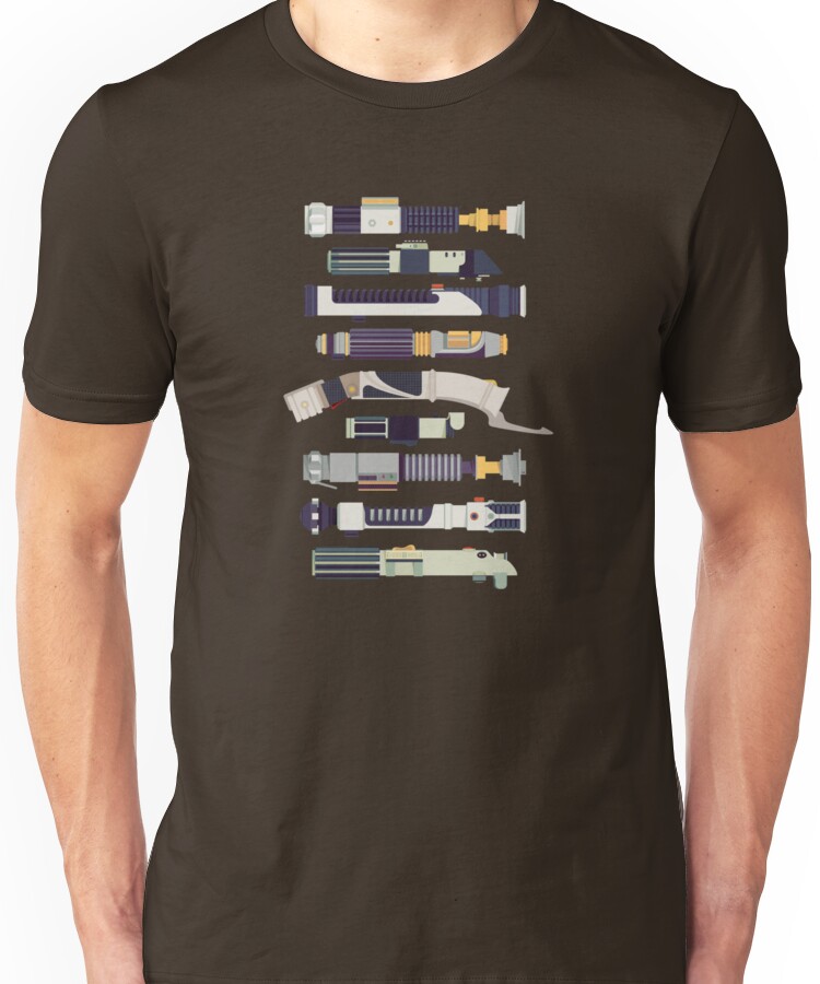 from the Artist: Unisex T-Shirt. This vector flat illustration accurately depicts 32 different lightsabers in the from another time and galaxy. The SVG vector files are available for free at http://lightsaberarchive.com