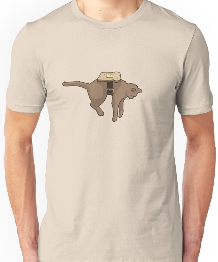 from the Artist: Unisex T-Shirt. If a cat always lands on it’s feet, and toast always lands butter-side down…