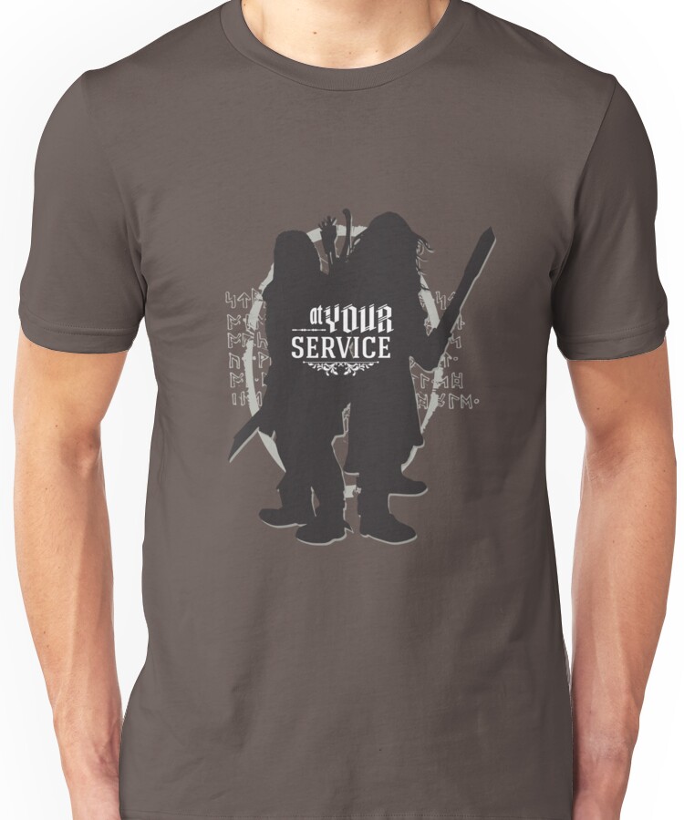 At Your Service Unisex T-Shirt NOW $19.5 October 13, 2017 by admin Click Here to Purchase at: $19.5 from the Artist: Unisex T-Shirt. Kili and Fili, at your service.