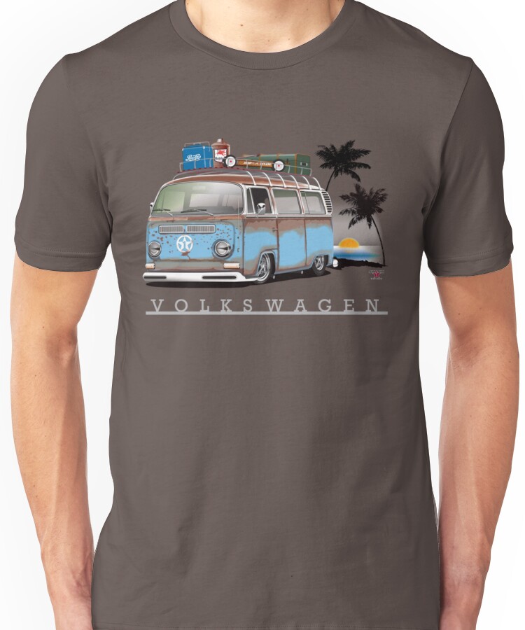 from the Artist: Unisex T-Shirt. Illustration of a very well weathered Type 2 Vw Bay Window Bus.