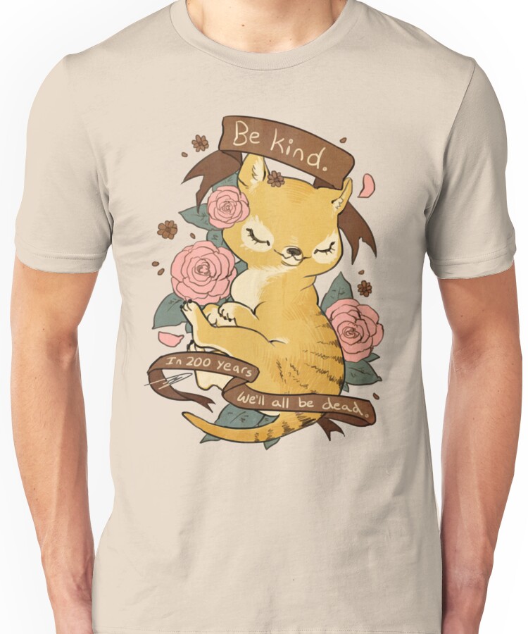 Be Kind Thylacine Unisex T-Shirt NOW $19.5 October 13, 2017 by admin Click Here to Purchase at: $19.5 from the Artist: Unisex T-Shirt. A reminder~