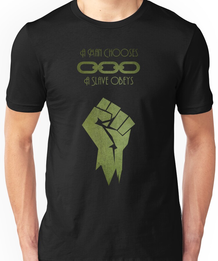 BioShock – A man Chooses Unisex T-Shirt NOW $19.91 October 13, 2017 by admin Click Here to Purchase at: $19.91 from the Artist: Unisex T-Shirt. A man chooses, a slave obeys.