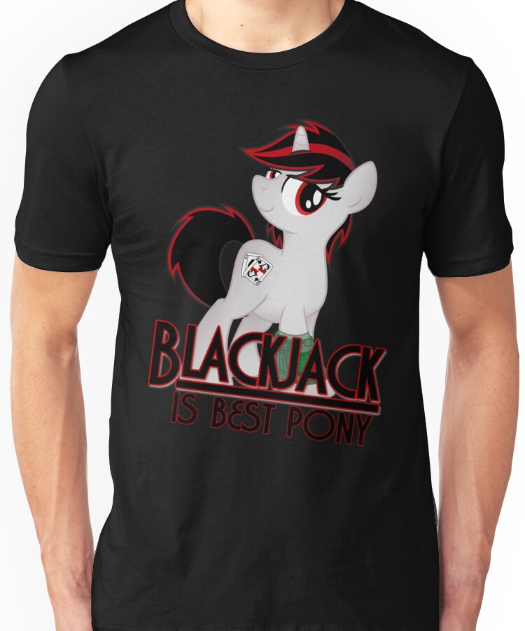 from the Artist: Unisex T-Shirt. Blackjack love, anypony? Anypony at all? Yes. I thought so. Those of you who know her love her well. If you don’t know who Blackjack is, she is a character from the epic fanfiction novel Project Horizons, which is based on Fallout: Equestria, which is in turn based on MLP:FiM (My Little Pony, Friendship is Magic) Art by Drawponies and Jakage. Design for character inspired by Rhodarein’s amazing work.
