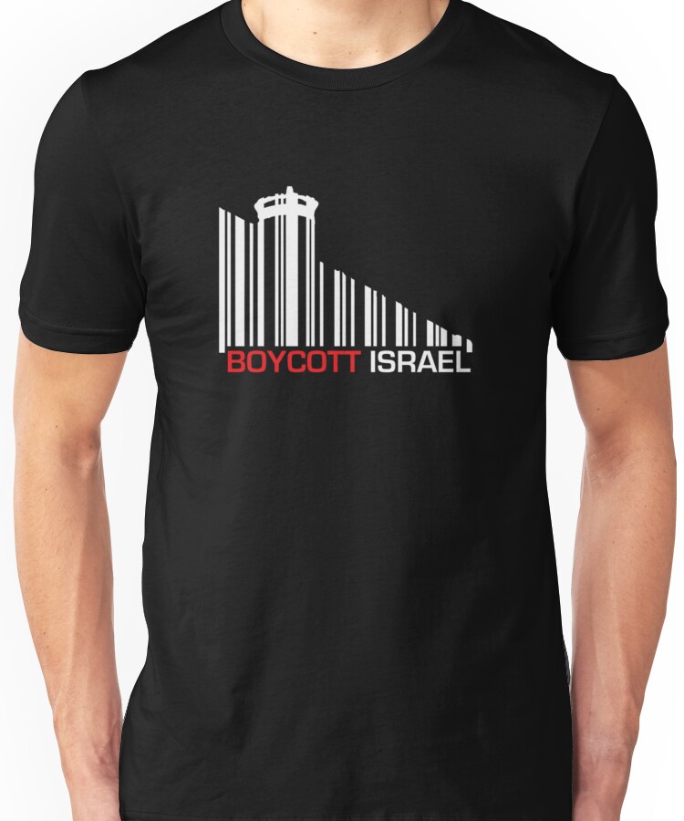from the Artist: Unisex T-Shirt. Because a nation that indoctrinates its young on the horrible atrocities of its people´s history, but fail to recognize the atrocities themselves are committing – is a nation that has institutionalized its racism. You are free to disagree, but the comparison to that racist regime is entirely accurate: *jewish/white-only roads, palestine/black-only bantustan* Because a boycott is a democratic weapon that works. It brought South Africas Apartheid system to its knees, and it _will break_ Israels Apartheid system. !http://ih1.redbubble.net/work.3529412.5.ts,482×482,white,mens,fafafa.jpg!:http://www.redbubble.com/people/vrangnarr/t-shirts/3529412-5-boycott-israel-tank-version !http://ih3.redbubble.net/work.4416022.2.ts,482×482,black,mens,fafafa.jpg!:http://www.redbubble.com/people/vrangnarr/t-shirts/4416022-2-boycott-israel-wall-version-red