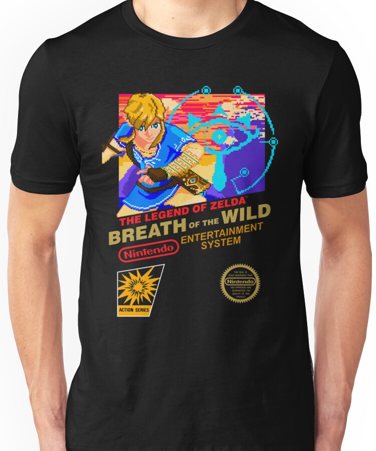 from the Artist: Unisex T-Shirt. I wanted to recreate a NES cover for Breath of the Wild and that’s tehe result! Enjoy it! ^^