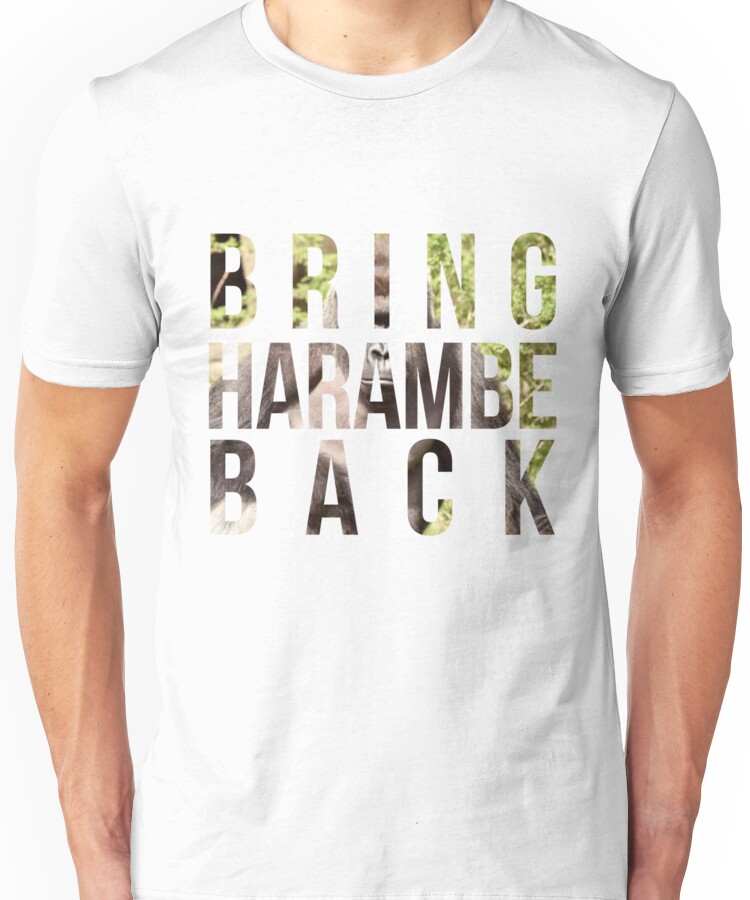 Bring Harambe Back Unisex T-Shirt NOW $19.5 October 13, 2017 by admin Click Here to Purchase at: $19.5 from the Artist: Unisex T-Shirt. IN LOVING MEMORY OF HARAMBE, #NEVERFORGET