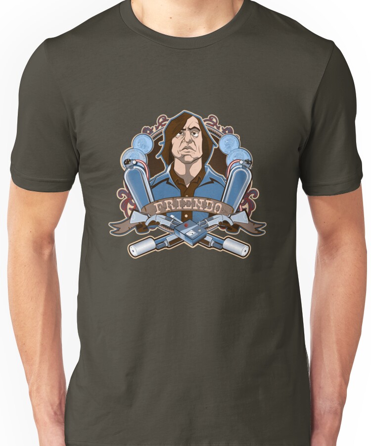 from the Artist: Unisex T-Shirt. I thought the villain in No Country was one of the best parts of that movie. I have seen several Friendo shirts on the web but they are nothing more than auto-traced photographs. I wanted to actually draw one myself.