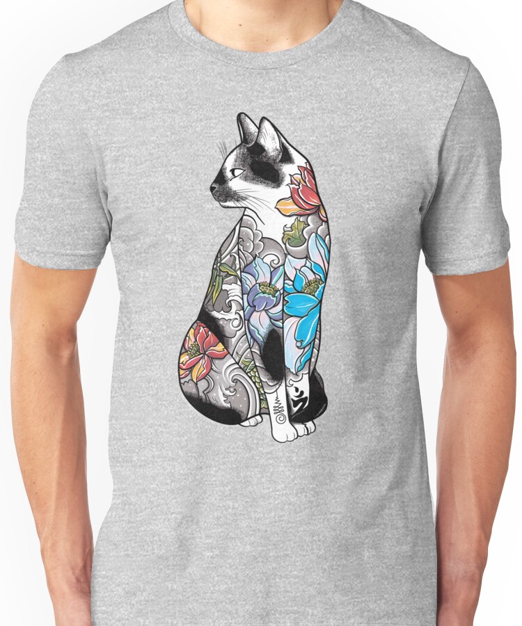 Cat in Lotus Tattoo Unisex T-Shirt NOW $19.5