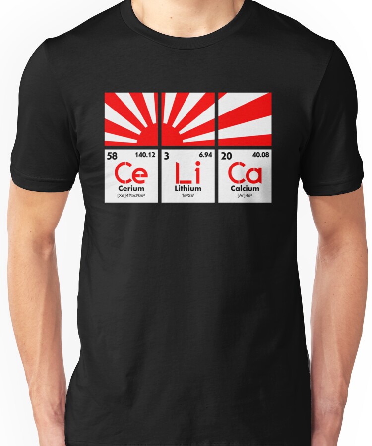 Cerium Lithium Calcium rising sun (2) Unisex T-Shirt NOW $20.31