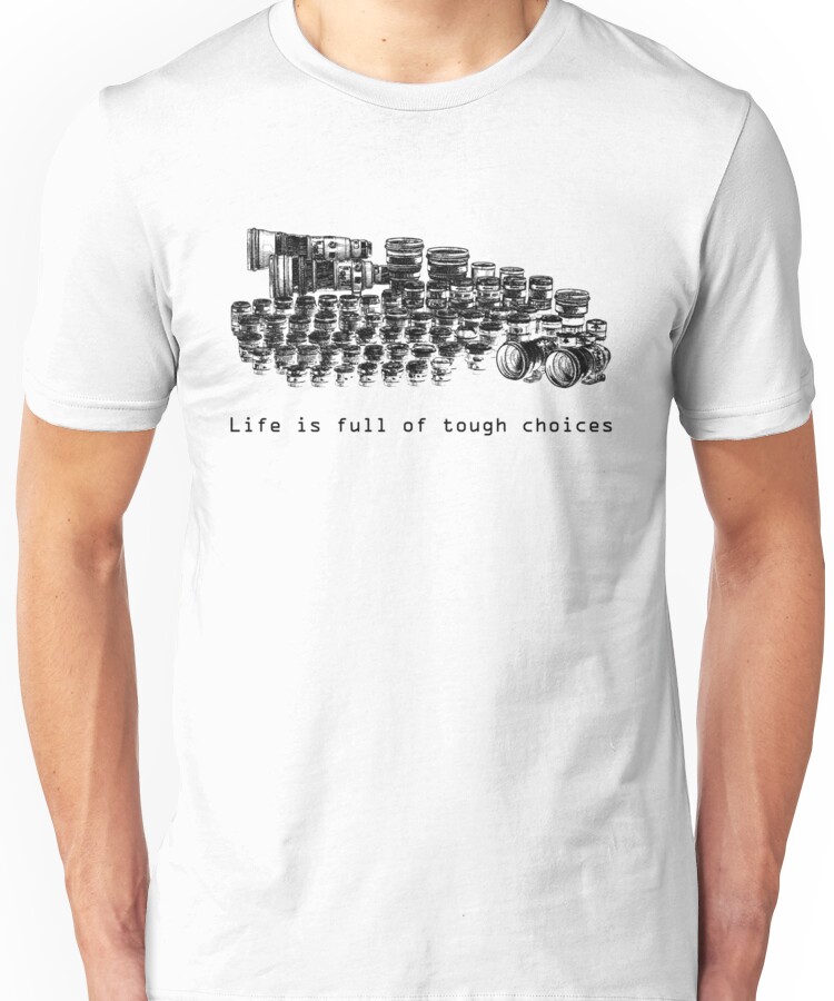 Choices Unisex T-Shirt NOW $19.5 October 13, 2017 by admin Click Here to Purchase at: $19.5 from the Artist: Unisex T-Shirt. Life is full of tough choices for a photographer