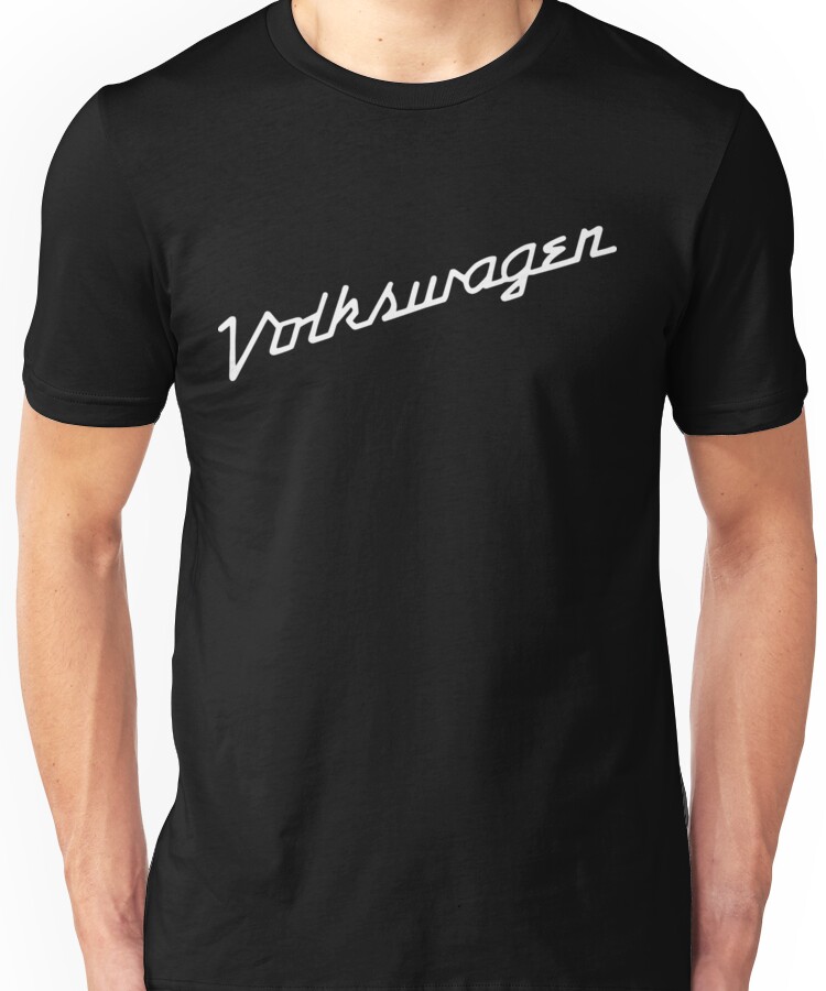 from the Artist: Unisex T-Shirt. Classic VW hood script emblem known from early aircooled Beetles.