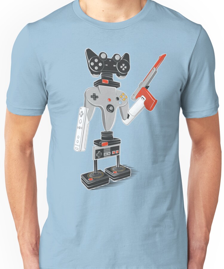 from the Artist: Unisex T-Shirt. Robot Mash of all our favourite controllers from gamer past including playstation, nintendo and atari.