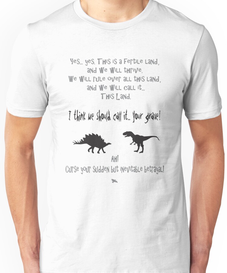 from the Artist: Unisex T-Shirt. From Wash Washburns immortal battle between good and evil. Plastic dinosaur style. In grey. This design comes in a number of colors so you can customize your shirt just right. Please keep in mind the color of the shirt you are looking at. Dark colors look better on light shirts, light colors look better on dark shirts.