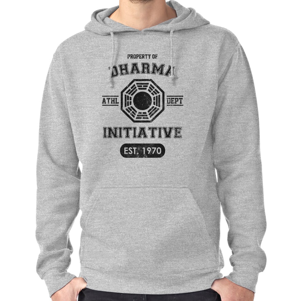 from the Artist: Hoodie (Pullover). Sports university-styled design of the well known Dharma Initiative as seen in LOST. “Dharma Initiative Athletic department, since 1970.” If you want a light version of this design you can get it “here”:http://www.redbubble.com/people/malvadophd/works/8821875-dharma-initiative-athletic-department.