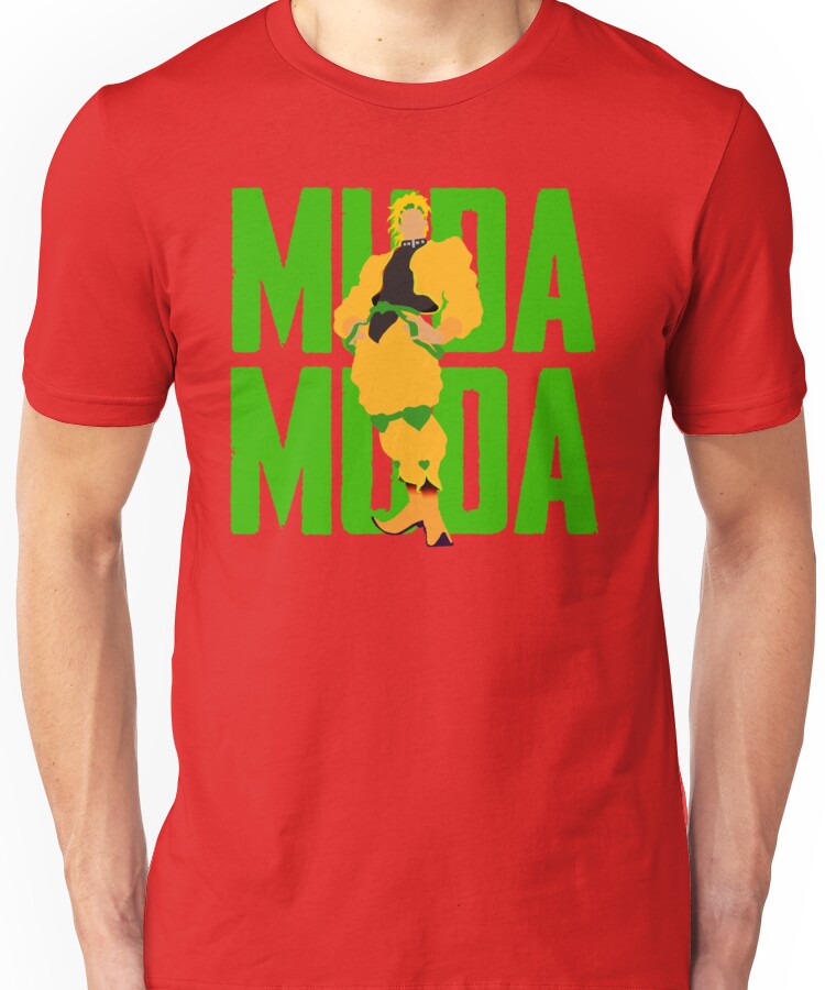 from the Artist: Unisex T-Shirt. A simplified and minimalistic art work of Jojo’s Bizarre Adventure’s antagonist in his signature pose along with his catch phrase, DIO!
