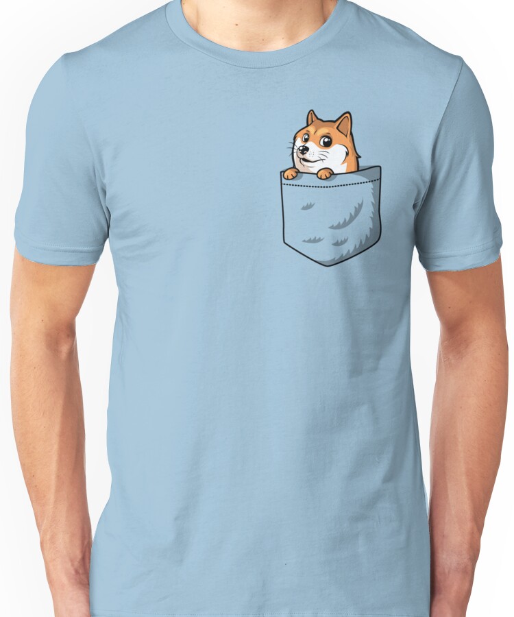 from the Artist: Unisex T-Shirt. Carry a Doge in your pocket! Very Pocket, Much Shirt. Impress all your friends will a friendly doge in your pocket, ready to give very wow to your many pals.