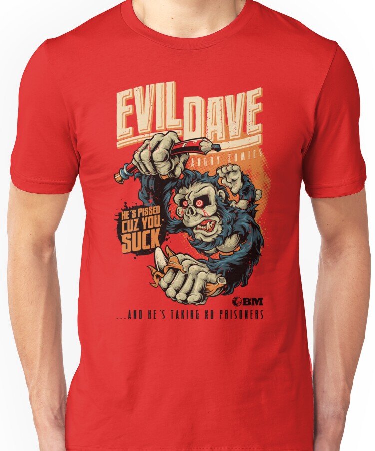 from the Artist: Unisex T-Shirt. Watch out, guys! Here comes Evil Dave. He’s pissed cuz you suck. And he’s making no prisoners!!! 😉