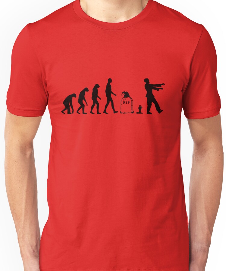 from the Artist: Unisex T-Shirt. Evolution Of the Zombie Design, perfect for Halloween! Are you looking for this design on a black or dark shirt? Have a look on that: “Evolution Zombie dark”:http://www.redbubble.com/people/nektarinchen/works/10722128-evolution-zombie