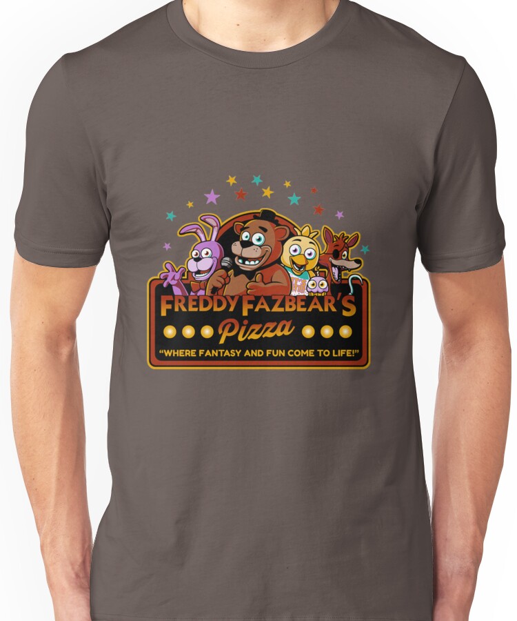 Five Nights at Freddy’s Freddy Fazbear’s Pizza FNAF logo Unisex T-Shirt NOW $19.5 October 13, 2017 by admin Click Here to Purchase at: $19.5 from the Artist: Unisex T-Shirt. Where Fantasy and Fun Come to Life