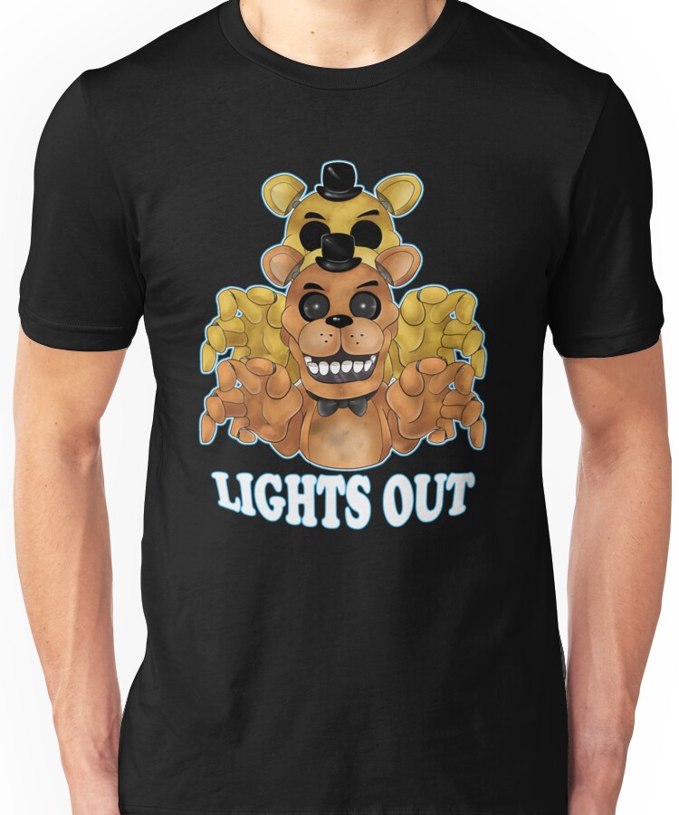 FIVE NIGHTS AT FREDDY’S-FREDDY-Lights Out Unisex T-Shirt NOW $19.5 October 13, 2017 by admin Click Here to Purchase at: $19.5 from the Artist: Unisex T-Shirt. featuring freddy fazzbutt and golden fazzbutt