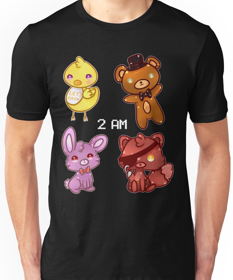 from the Artist: Unisex T-Shirt. They’re not so scary, they just want to be your friends. ? Chica, Fazbear, Bonnie, and Foxy.