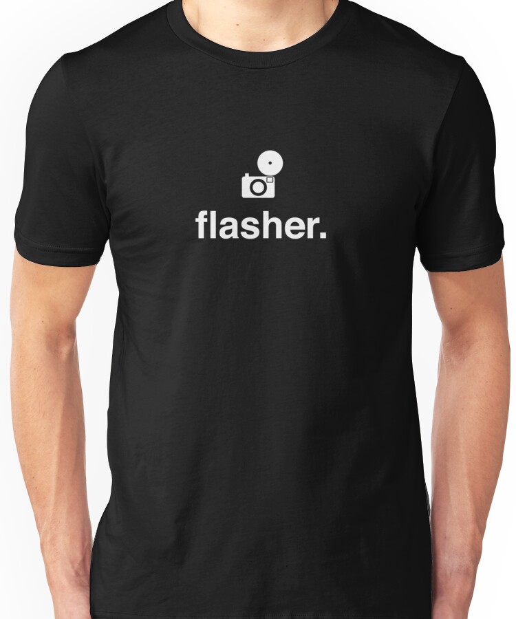 from the Artist: Unisex T-Shirt. An iconic t-shirt for every notable photographer. Inspired by the great Ian Rankin and my friend the greater Anthony Fisher of The Foto !http://images-2.redbubble.net/img/art/size:ularge/view:main/3395203-2-flasher-pic.jpg!
