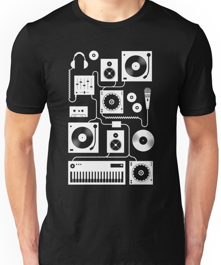 from the Artist: Unisex T-Shirt. Celebrate your love for music with 2 turntables, 2 studio monitors, 2 CDJs, a synth, a mixer, and a pair of headphones.