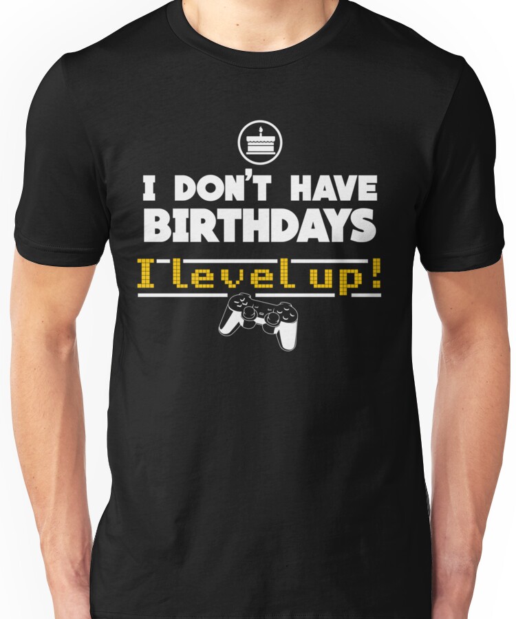 Gamer Unisex T-Shirt NOW $20.15 October 13, 2017 by admin Click Here to Purchase at: $20.15 from the Artist: Unisex T-Shirt. I don’t celebrate birthdays 🙂