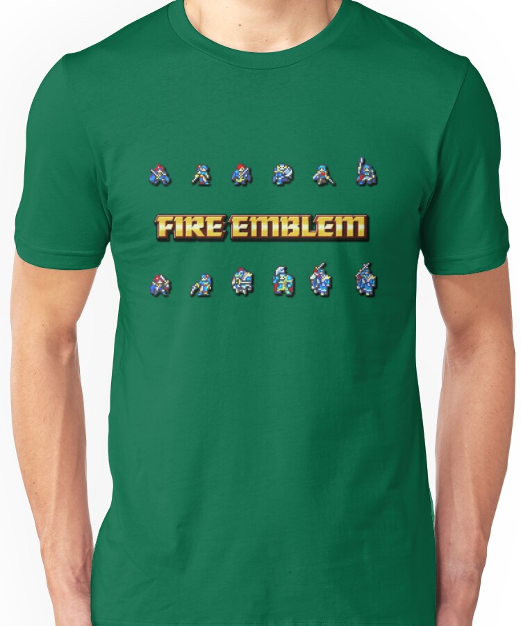from the Artist: Unisex T-Shirt. Pixel sprites of the six lords from the GBA games: Roy, Lyn, Eliwood, Hector, Eirika, and Ephraim! Even has their promotions and a pixelated Fire Emblem logo.