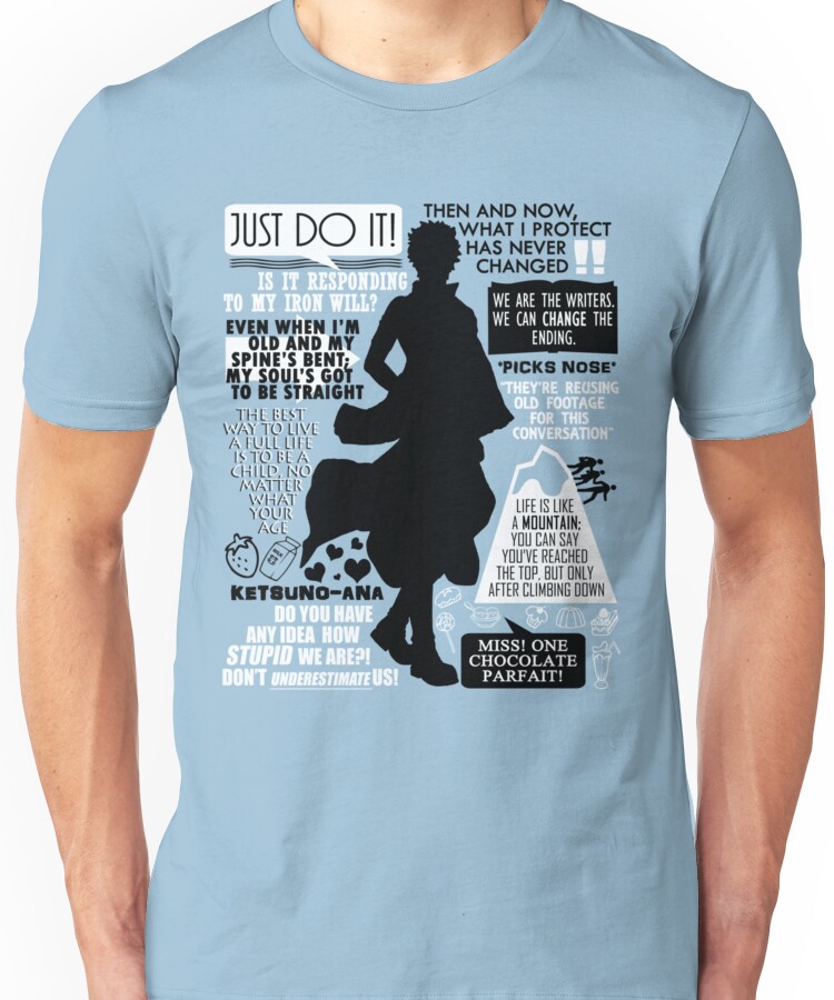 Gintama – Sakata Gintoki Quotes Unisex T-Shirt NOW $21.13 October 13, 2017 by admin Click Here to Purchase at: $21.13 from the Artist: Unisex T-Shirt. Just do it!