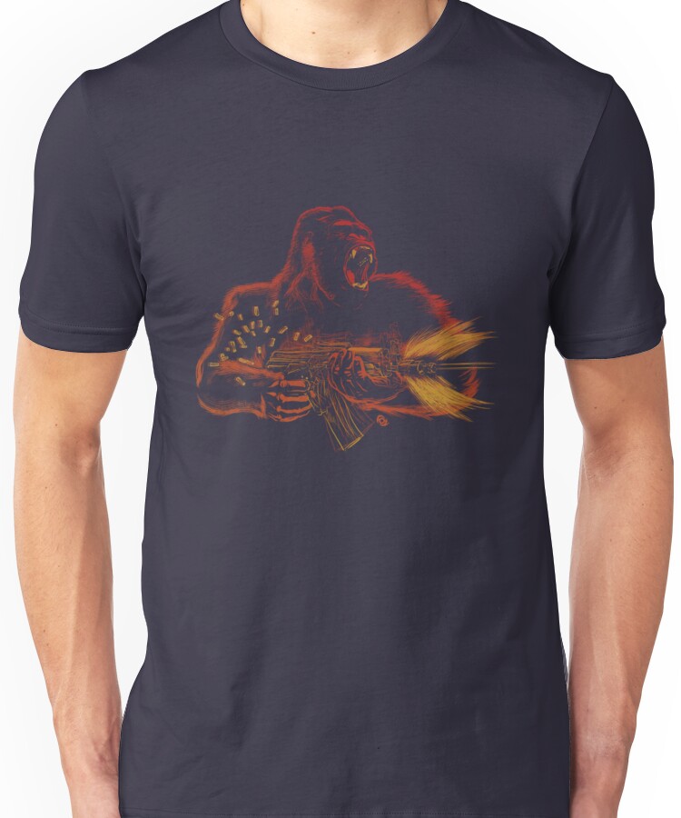 Gorilla Warfare Unisex T-Shirt NOW $24.38 October 13, 2017 by admin Click Here to Purchase at: $24.38 from the Artist: Unisex T-Shirt. A Gorilla with a Machine Gun.