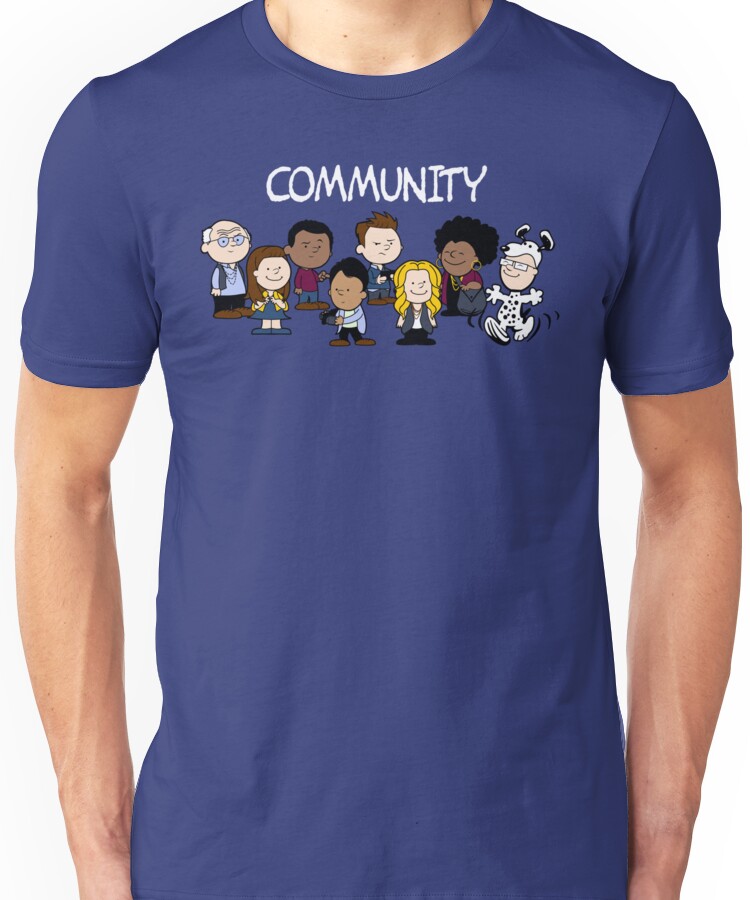 from the Artist: Unisex T-Shirt. The Community gang in the style of Peanuts. With emphasis on the “nuts”.