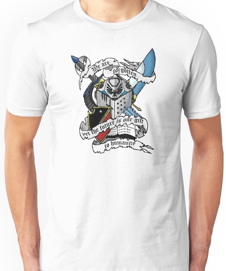 from the Artist: Unisex T-Shirt. Grey Knights 7th Brotherhood words, along with the Sword of Mandulis and the shield heraldry of Justicar Alaric