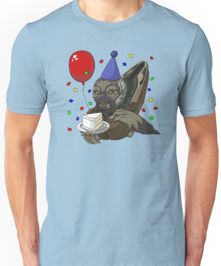 from the Artist: Unisex T-Shirt. If you’ve played Halo 3 or newer, you know what this means. Shoot a Grunt in the head, they explode into confetti! But it had to be based off a real Grunt’s birthday party. Thought I’d give it a shot.
