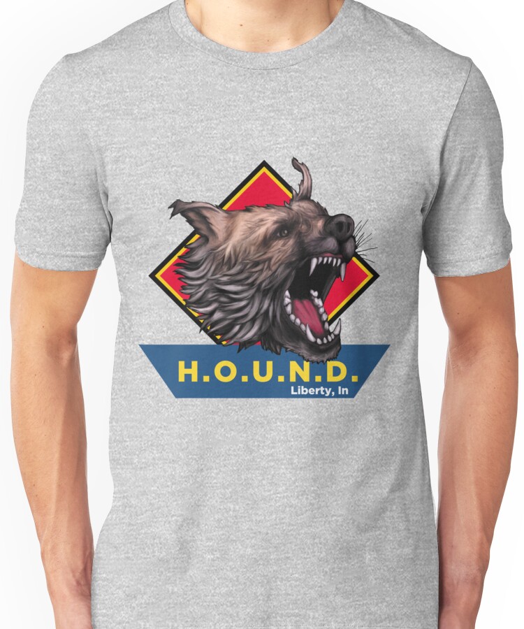 from the Artist: Unisex T-Shirt. H.O.U.N.D Liberty, In shirt/hoody recreation in Heather Grey. Available in sizes S – 3XL Please note this is a recreation of the shirt seen in Sherlock and the original copyright of the design belongs to the BBC.