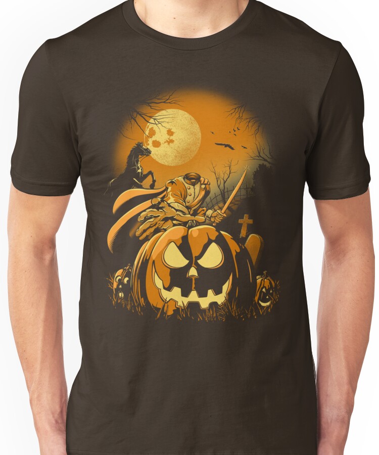 from the Artist: Unisex T-Shirt. On Hallow Eve, the headless horseman searches for the perfect jack-o-lantern to use as his head