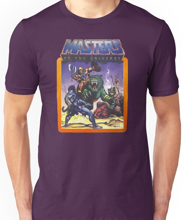 from the Artist: Unisex T-Shirt. He-Man Masters of the Universe Battle Scene. He-Man, Skeletor, Battlecat, and Teela