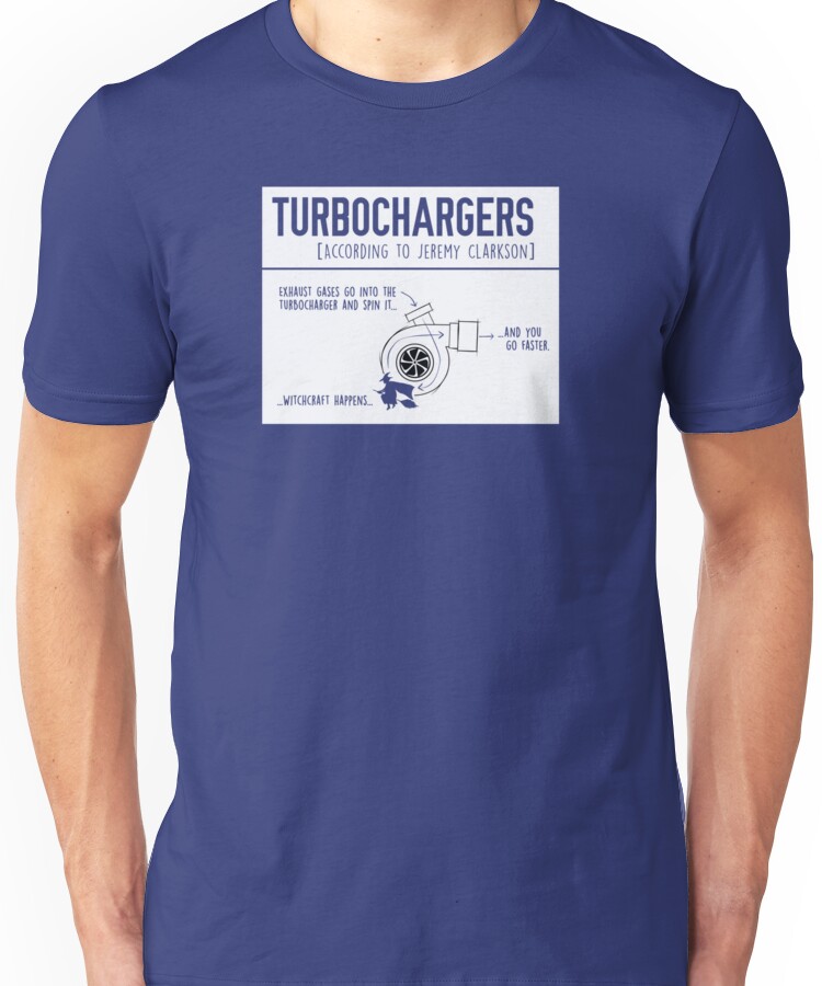 How Turbochargers work, By Jeremy Clarkson Unisex T-Shirt NOW $19.83