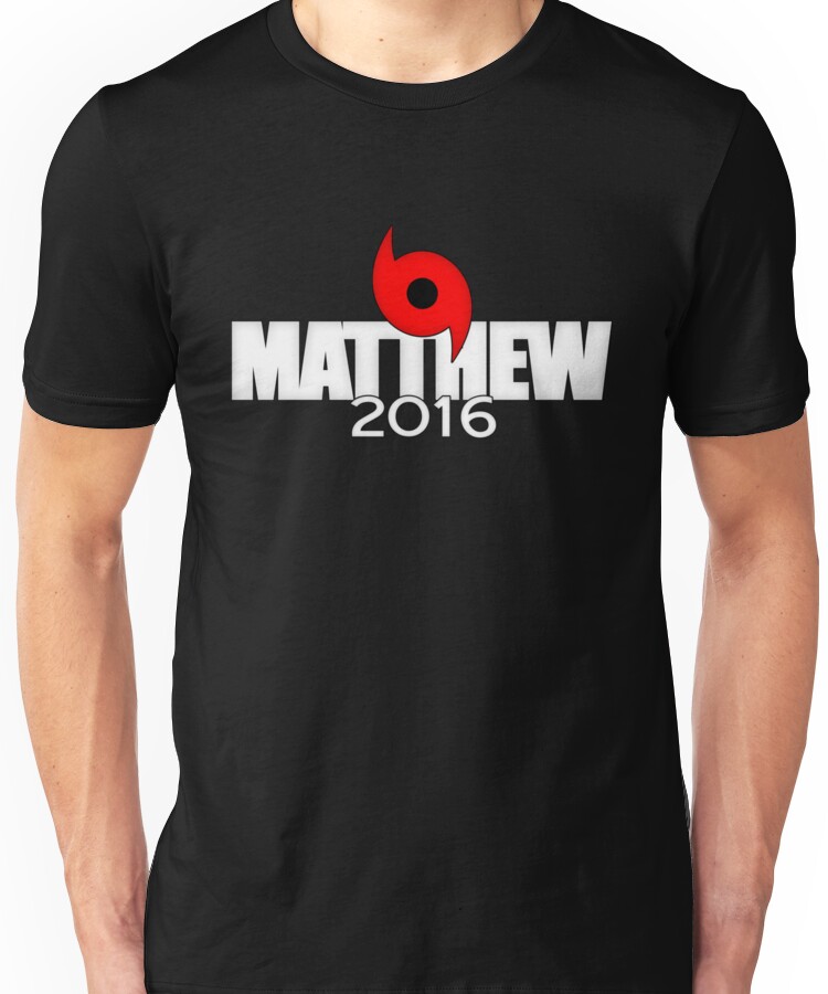 Hurricane Matthew 2016 Unisex T-Shirt NOW $19.66 October 13, 2017 by admin Click Here to Purchase at: $19.66 from the Artist: Unisex T-Shirt. Hurricane Mathew 2016 with a Hurricane symbol
