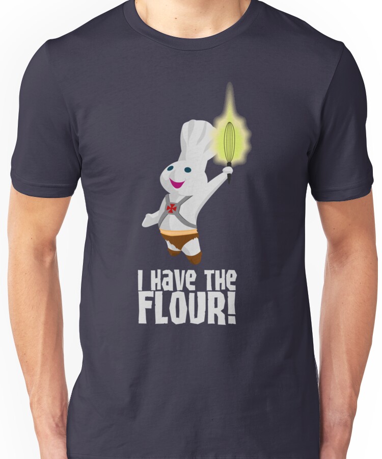 from the Artist: Unisex T-Shirt. Prince Doughboy of Pillsburia has a secret: When he raises his magic whisk and says the magic phrase “I HAVE THE FLOUR!” He becomes Pillsburia’s Doughy Defender – DOUGH-MAN!