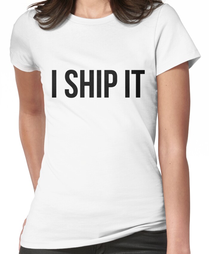 from the Artist: Women’s T-Shirt. Story of my life. Story of Tumblr’s life. *Version 1* [pictured] black text. “*Version 2*”:http://www.redbubble.com/people/sstilinski/works/9085574-i-ship-it-v2 white text.