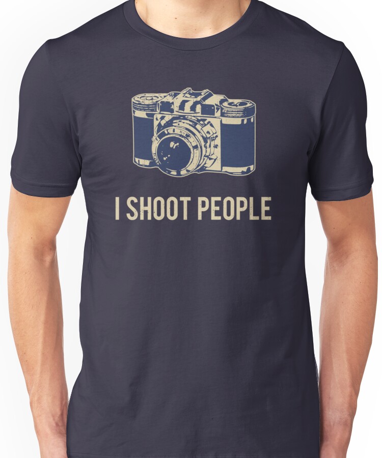 from the Artist: Unisex T-Shirt. This vintage retro camera is sure to offset the alarming declaration that you shoot people. Smile for the camera! Great gift or tshirt for photographers, cameramen and women, and those who appreciate photography.