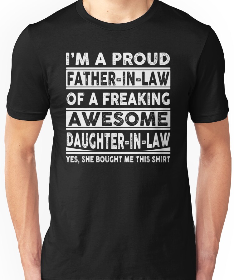 from the Artist: Unisex T-Shirt. I’m A Proud Father In Law Of A Freaking Awesome Daughter In Law Yes, She Bought Me This shirt