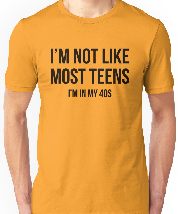 I’m Not Like Most Teens – I’m In My 40s Unisex T-Shirt NOW $19.01 October 13, 2017 by admin Click Here to Purchase at: $19.01 from the Artist: Unisex T-Shirt.