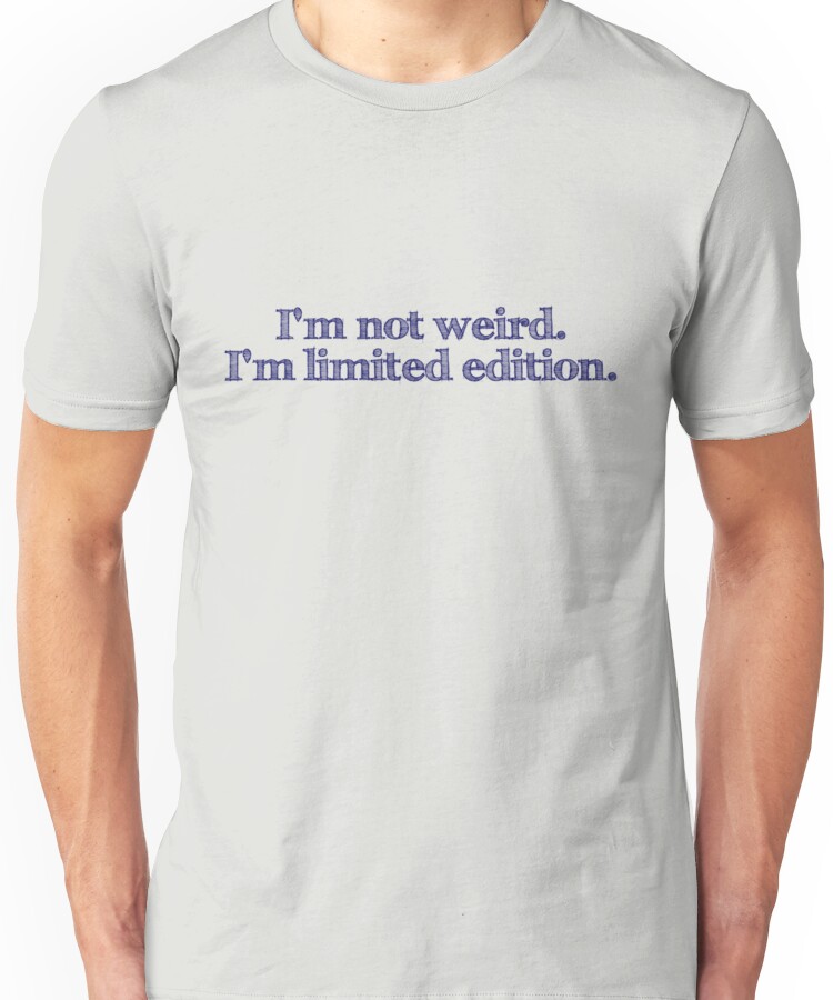 I’m not weird I’m limited edition Unisex T-Shirt NOW $19.5 October 13, 2017 by admin Click Here to Purchase at: $19.5 from the Artist: Unisex T-Shirt. a distinct difference, you know.