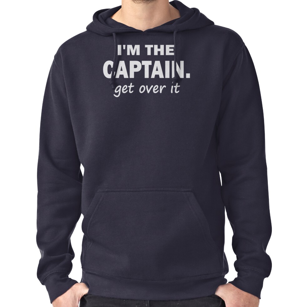 from the Artist: Hoodie (Pullover). Alright Captains… No need to be shy about letting everyone around you know exactly who it is that’s in charge. Yup… that’s you…. the Captain. Everyone else can just get over it, right? 😉 Also available in a decal !http://ih1.redbubble.net/work.4864573.2.sticker,375×360.im-the-captain-get-over-it-tshirt-v1.png!:http://www.redbubble.com/products/configure/4864573-sticker If you love this t-shirt than you’ll probably love this one too! !http://ih3.redbubble.net/work.4864054.2.fig,navy,mens,fbfbfb.what-happens-on-the-boat-stays-on-the-boat-t-shirt-v3.jpg!:http://www.redbubble.com/people/outdooraddix/t-shirts/4864054-what-happens-on-the-boat-stays-on-the-boat-t-shirt